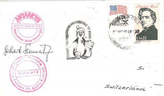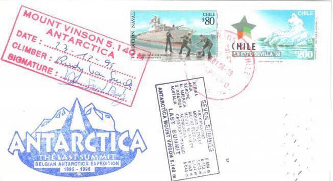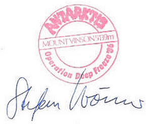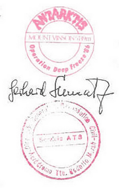 1966 bestieg eine amerikanische Bergsteigergruppe erstmals den höchsten Berg der Antarktis – den Mount Vinson (5140m). Von dieser Expedition stammt der nachfolgende Brief.