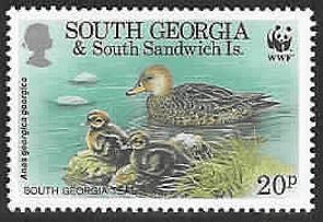 Die rechts aufgeführten Beispiele stammen von Südgeorgien – die Südgeorgische Spiessente und der georgische Pieper