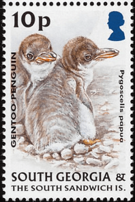 Die Eselspinguine ( Pygoscelis papua ) sind den Adélies weniger ähnlich als die Zügelpinguine, sie sind mit einem Durchschnittsgewicht auch grösser und besitzen eine auffällige Kopfzeichnung in Form von weissen Flecken über den Augen. Mit den Adélies bilden sie zwar häufig Brutkolonien, bevorzugen aber flacheren und näher am Wasser gelegenen Untergrund. Ihre Nester sind aber grösser und liegen auch weiter auseinander als bei den Adélies. Diese kleinere Dichte macht aber die Nester auch anfälliger für Eierräuber.