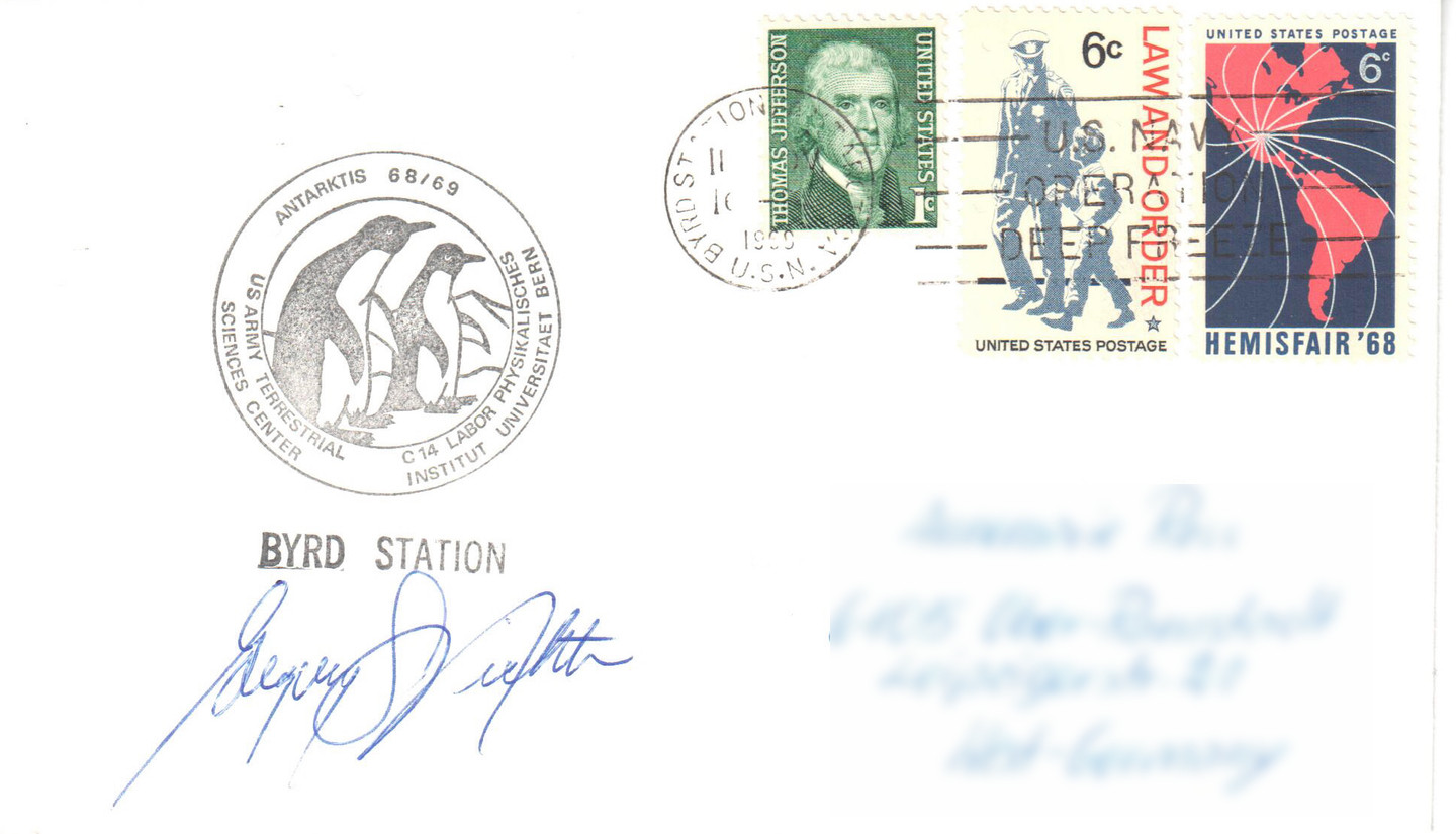 - 1963 : An der Polarforschung interessierte Wissenschaftler schweizerischer Hochschulen wurden auf den.27.November 1962 zu einer „wissenschaftlichen Sitzung“ nach Bern eingeladen. Die Einladung verschickte Gilbert Caillet, der sich Generaldirektor der Gesellschaft Schweizerischer Forscher und Polarfahrer nannte. Auf der Sitzung wurde die Antarktisexpedition mit Route vorgestellt und mitgeteilt, dass die Expedition auf der sowjetischen Station Komsomolskaja überwintern werde, da die UdSSR diese aufgegebene Base zur Verfügung gestellt habe. Im Oktober 1964 werde die Reise fortgesetzt, um gegen Februar 1965 die australische Base Mawson zu erreichen. In sechs sog. „Südpol-Telegrammen“ stellte die Schweizer Gesellschaft der Forscher und Polarfahrer (SGFP) sich und ihr Epeditionsvorhaben vor. Dabei wurde bekannt, dass Gilbert Caillet 1959- 60 an der 9.französischen Antarktisexpedition auf der Station Dumont d ‚Urville teilgenommen hatte, wo er als Mechaniker gearbeitet hatte.