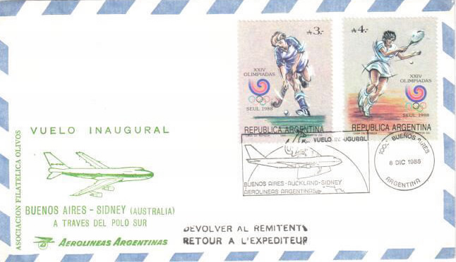 Für den Rückflug startete das Flugzeug in Christchurch/ Neuseeland am 9.Dez. 23.50 Ortszeit mit Ziel Vicecomodoro Marambio, konnte aber wegen schlechten Wetters dort nicht landen. Der Pilot änderte den Kurs und steuerte den südargentinischen Flughafen Rio Gallegos an, wo es am gleichen Tage um 23 Uhr Ortszeit landete. Die 9000 km lange Strecke wurde in 14 Stunden 40 Minuten zurückgelegt. Der Weiterflug nach Buenos Aires erfolgte am nächsten Tag.