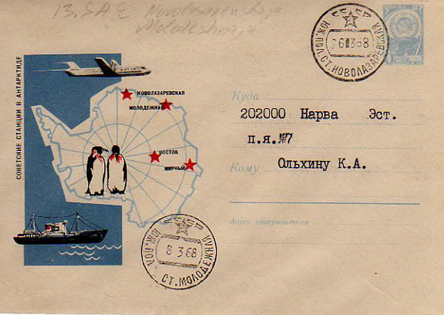 Interbasentransporte – also ein Transport von Antarktisstation zu Antarktisstation – sind zwar realistisch und auch notwendig, aber die „postalische Notwendigkeit“ ist nicht immer nachvollziehbar. Zum Anfang stelle ich einfach einige solche Belege in den Raum: