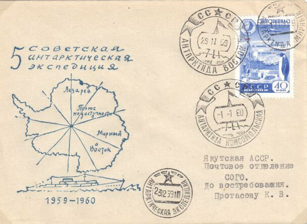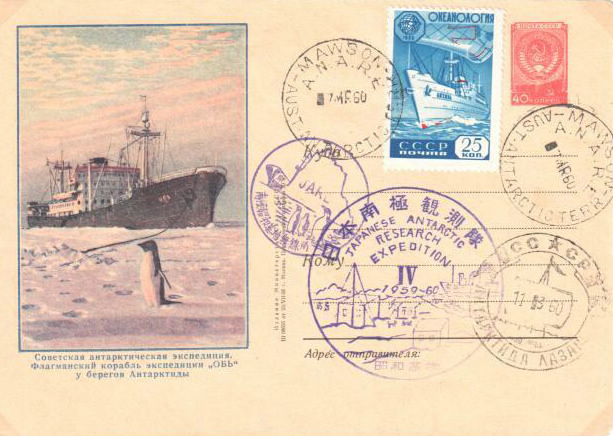 1960: Lazarew – Mirny – Vostok – Mawson : ohne Adresse und JARE Cachet